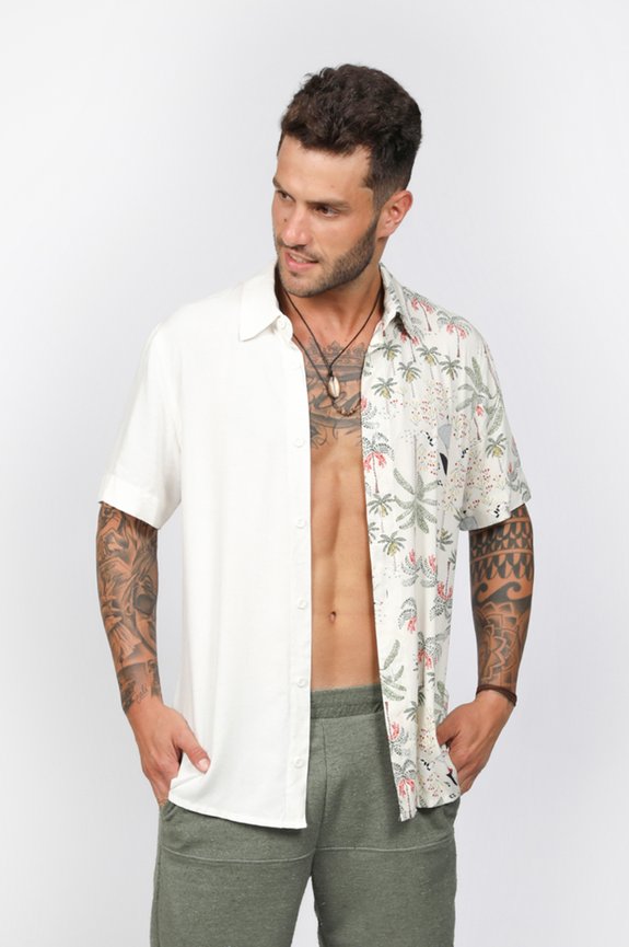 TODAS AS CARACTERÍSTICAS FAZEM DESTA CAMISA A ESCOLHA PERFEITA PARA SE MANTER FRESCO E CONFORTÁVEL EM CLIMAS MAIS QUENTES. A CAMISA APRESENTA UMA MODELAGEM REGULAR, BOTÕES DE MASSA PERSONALIZADOS, UMA GOLA CLÁSSICA E UM FECHAMENTO FRONTAL. ALÉM DISSO, O DIFERENCIAL DESTA PEÇA É A ETIQUETA DE COURO SINTÉTICO COSTURADA NA LATERAL, QUE ADICIONA UM TOQUE DE AUTENTICIDADE E ESTILO. DESTACANDO AINDA MAIS ESTA CAMISA HÁ UM RECORTE CENTRAL, CRIANDO UM VISUAL MODERNO E ÚNICO. ESTE DETALHE ACRESCENTA UMA DOSE EXTRA DE ORIGINALIDADE À PEÇA, TORNANDO-A UMA ESCOLHA DISTINTA PARA DIVERSAS OCASIÕES.